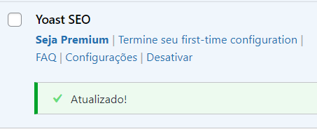 8. Após a atualização ser concluída, uma mensagem confirmará que seu plugin foi atualizado.