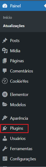 O painel de controle é onde você verá o menu lateral esquerdo com várias opções, incluindo “Painel”, “Posts”, “Mídia”, “Páginas”, entre outras. Para desinstalar um plugin, você precisa acessar a seção “Plugins”, e é isso que você fará no próximo passo.