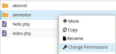 Ao achar a pasta do plugin, clique sobre ela com o botão direito e clique em “change permissions”, que fará a alteração de permissões.