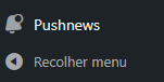 Depois que o plugin estiver devidamente ativado, precisaremos adicionar as credenciais da pushnews para conectá-lo corretamente à nossa conta. Para fazer isso, localize o ícone do plugin na barra lateral à esquerda e clique nele. O ícone aparecerá dessa forma:
