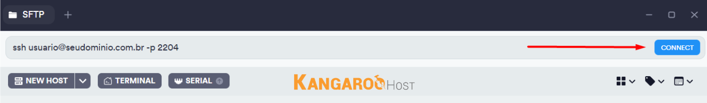Olá, pequeno Kangaroo, tudo bem? Se você deseja se conectar via terminal SSH com a sua hospedagem, mas ainda não sabe como, neste artigo vamos te mostrar como fazer isso através da ferramenta Termius, que é uma das várias opções que você pode optar para realizar esse tipo de conexão.