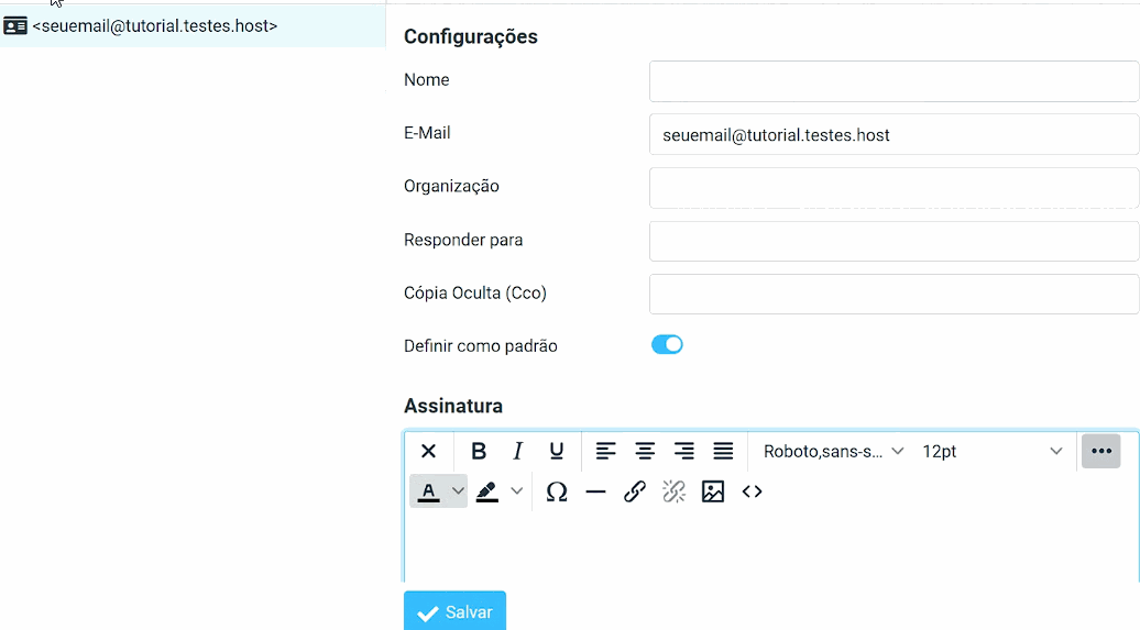 - Com o ajuste feito, clique em Salvar e todas as próximas novas mensagens já contarão com a assinatura presente ao fim da mensagem!
