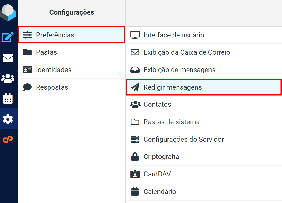 - Agora, precisamos garantir que a assinatura será incorporada em todas as mensagens. Para isso, clique em Preferências e seguir clicando em Redigir mensagens;