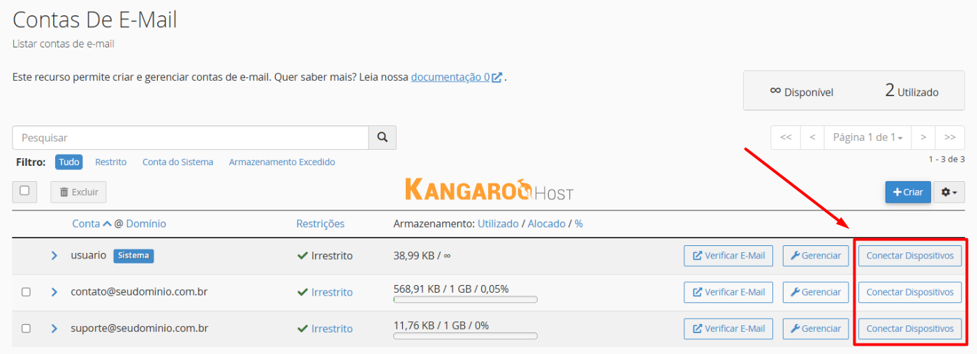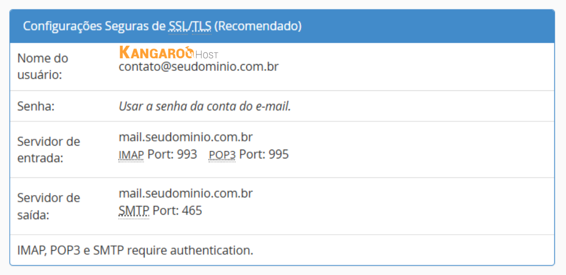 4- Na tela que se abrirá, você poderá coletar informações de dados de servidor e portas necessárias para a conexão.