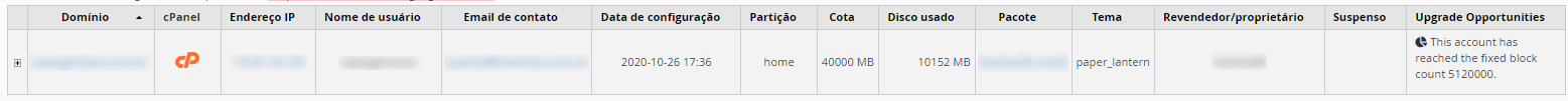 Se uma conta de hospedagem em sua revenda apresentar a mensagem This account has reached the fixed block count 5120000 essa notificação serve para você ser avisado(a) quando uma hospedagem está consumindo recursos rapidamente e o servidor entendeu que com essa velocidade de entrada de arquivos em poucas horas a quota de espaço em disco será atingida e orienta o upgrade no menor tempo possível.